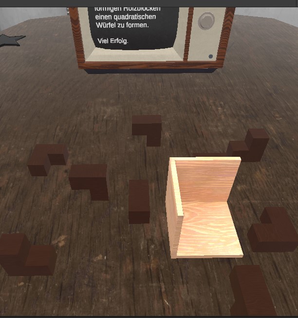 Mein Fokus lag bei der Programmierung der Sound- und Stimm-Effekte, sowie die Anpassung der Controller Steuerung. Die Objekte, die der Proband in die Hand nehmen kann, habe ich entsprechend vorbereitet, sodass sie nach ihrer zugeordneten Funktion einsetzbar sind, und die passenden Effekte auslösen.