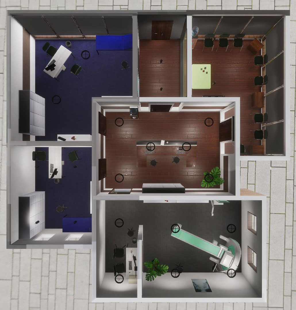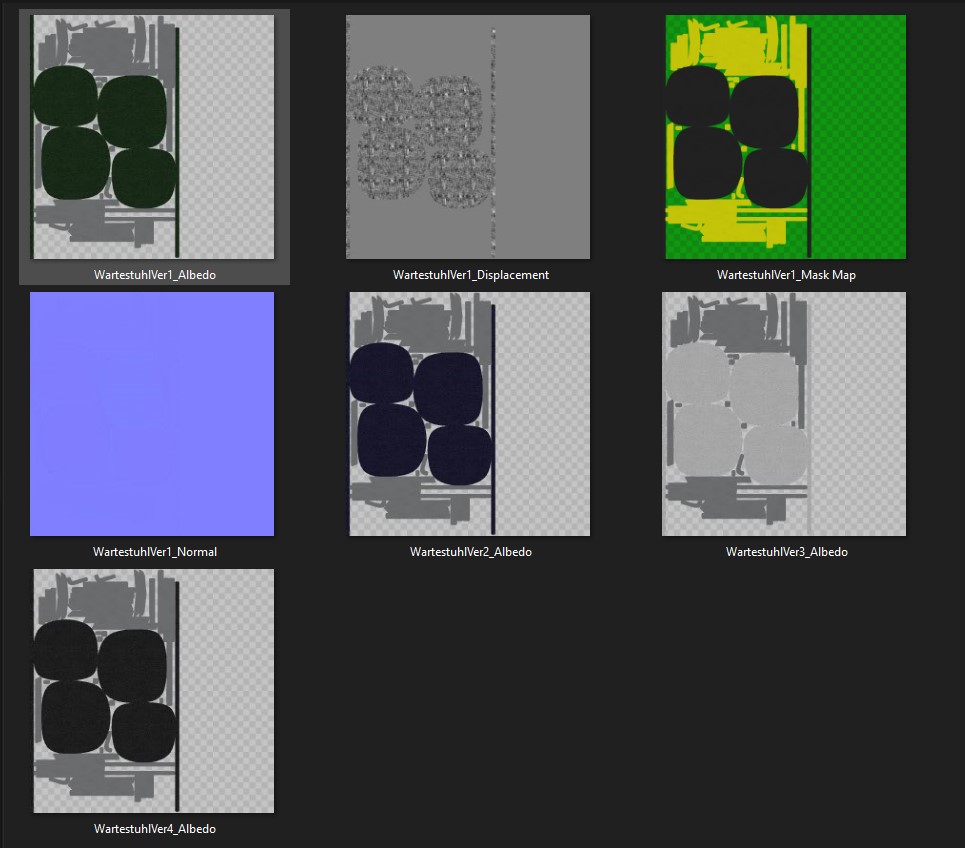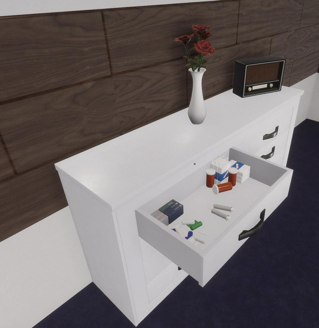 Für dieses Projekt habe ich einen Teil der Assets vorbereitet, UV-Unwrapped und mit Texturen via Quixel Mixer versehen. Ein paar Assets wie die Tür, die Schubladen und das Spielzeug im Warteraum habe ich zusätzlich Animationen in Unity erstellt.