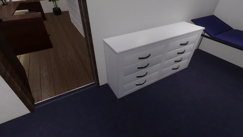 - Türen und Schubladen öffnen und schließen, mit Soundeffekt
